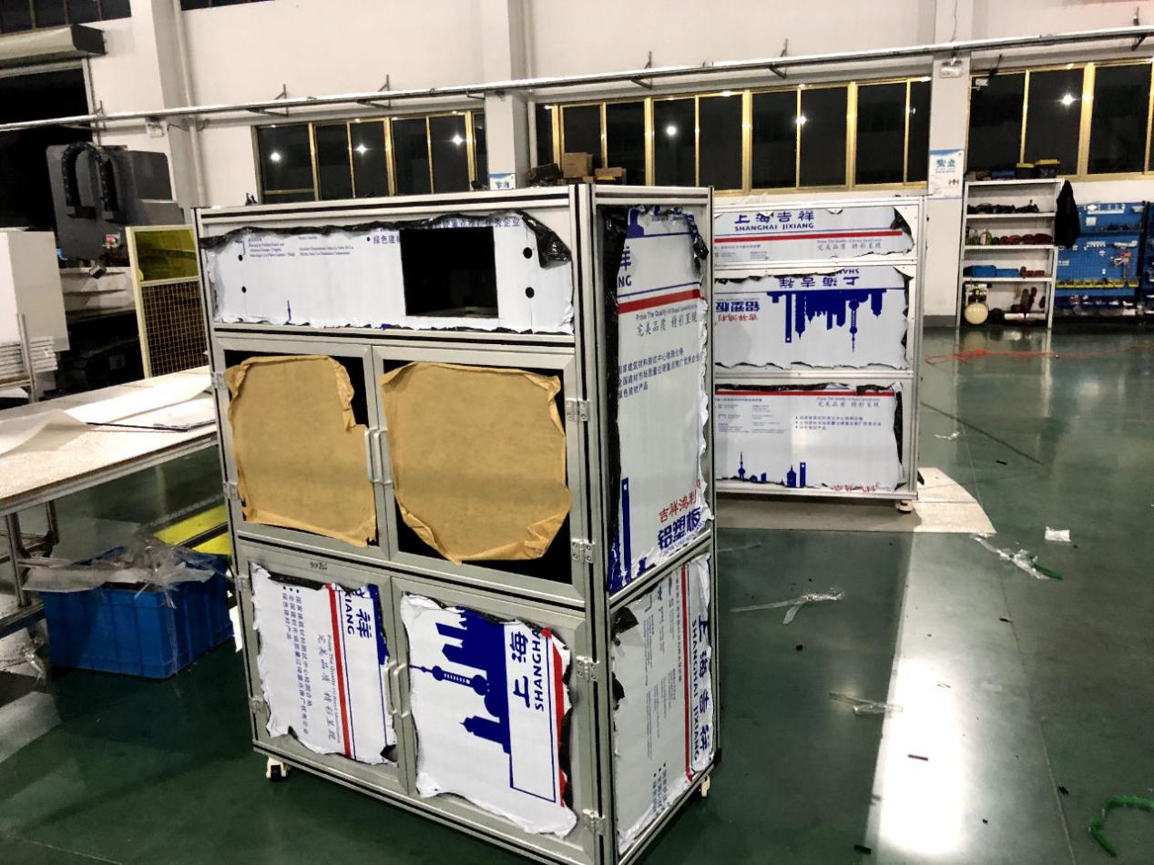 了解到王總我當(dāng)時(shí)就問(wèn)一下王總的機(jī)架的具體承重及尺寸,并且我們互相建立了微信技術(shù)小群1 對(duì)1技術(shù)參與直接溝通方案設(shè)計(jì)。約在2天經(jīng)過(guò)技術(shù)的1對(duì)1的技術(shù)服務(wù),我們雙方把方案敲定了。因?yàn)闀r(shí)間的關(guān)系,我們第一次試制了5臺(tái)。自動(dòng)化設(shè)備用鋁型材框架+鈑金做門(mén)。并與7月30號(hào)順利交期。王總他們收到貨后經(jīng)過(guò)性能測(cè)試,鋁型材框架在承載力和重量及生產(chǎn)效量能都遠(yuǎn)遠(yuǎn)大于原來(lái)鈑金焊接機(jī)架。王總為此非常開(kāi)心。